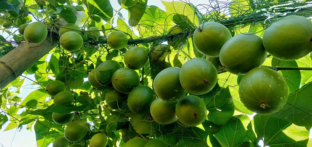 驿马村地理环境优越,适合种植优质罗汉果,此为驿马村罗汉果种植基地一角。(杨程云 摄)