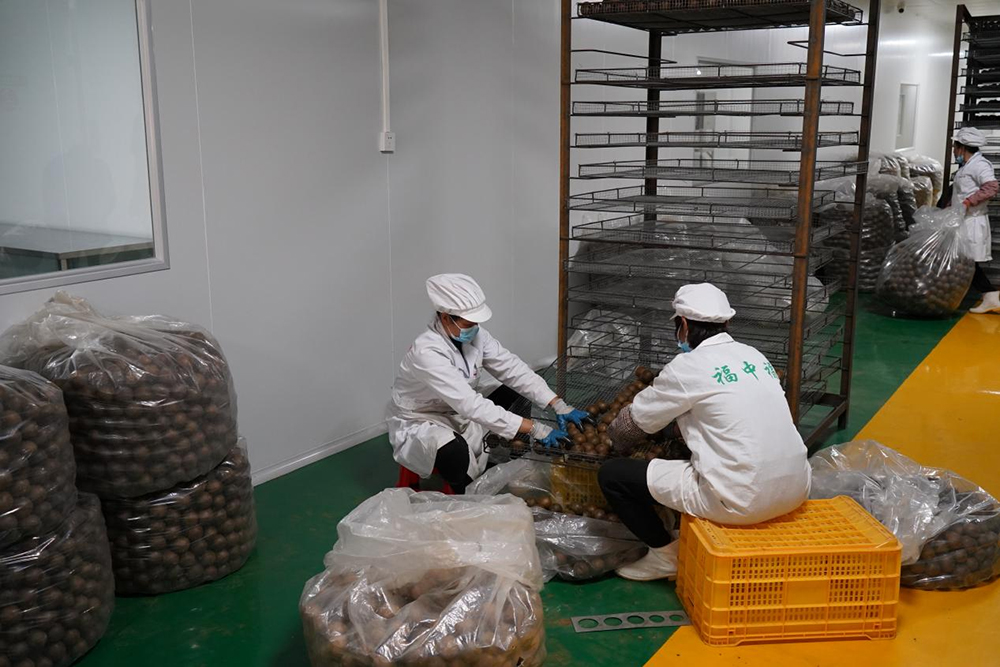 广西永福福中福罗汉果有限公司烘干车间里,罗汉果正在进行烘干初加工。(杨程云 摄)