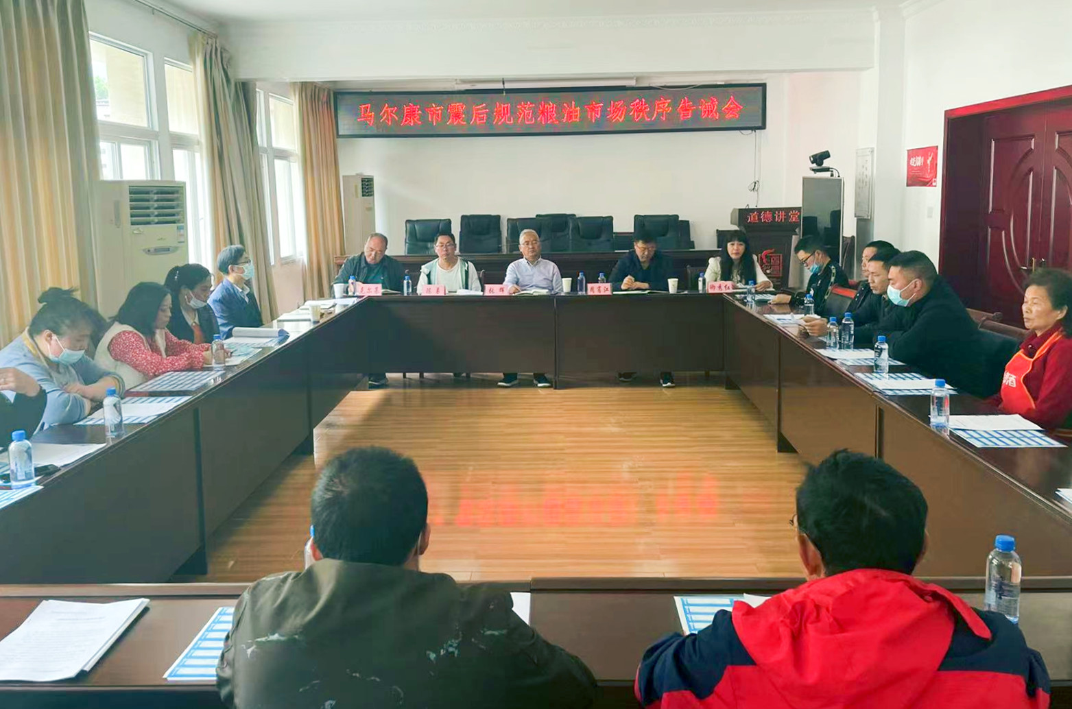 为规范震后粮油市场价格秩序工作,6月16日,阿坝州市场监管局召开马尔康市震后规范粮油市场价格秩序告诫会,16户粮油批发单位参会,阿坝州市场监管局党组成员、副局长张辉参加会议。
