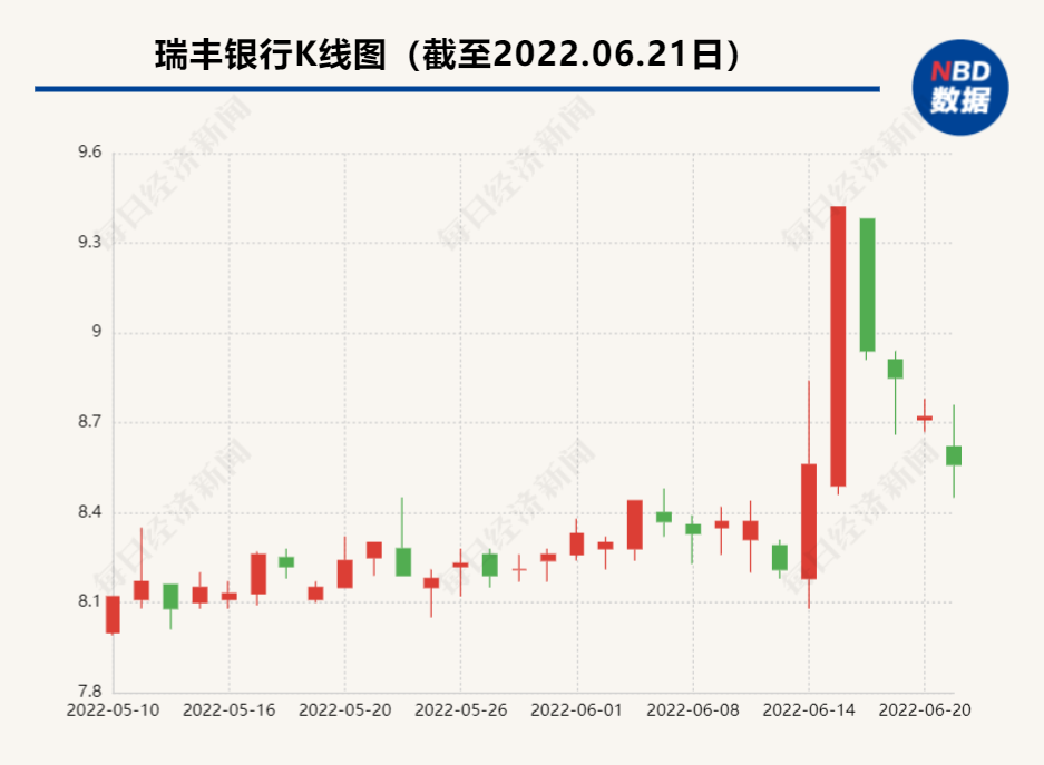 截至6月21日收盘,瑞丰银行报收8.56元,较前一交易日下跌1.83%。