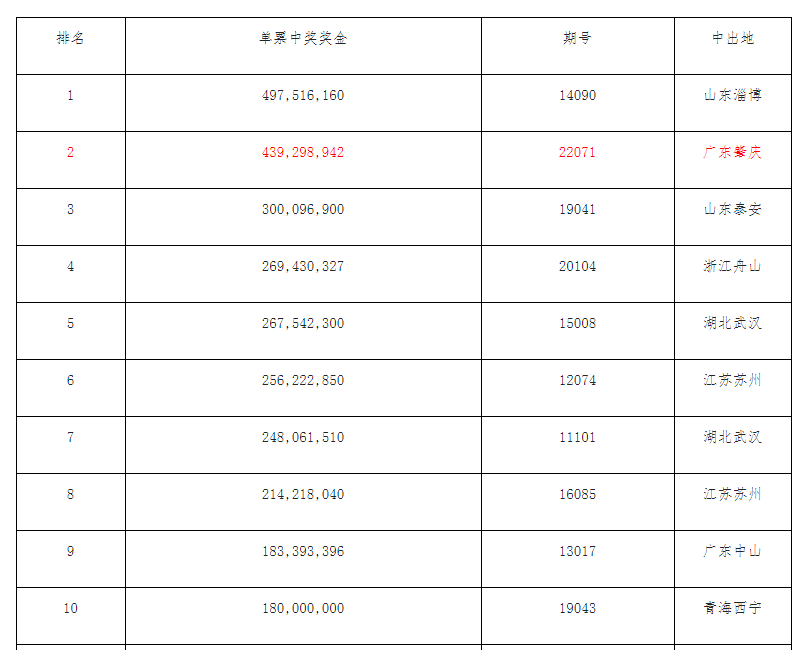 据中国体彩网报道,此次4.39亿元大奖是超级大乐透今年国内爆出的第二个亿元大奖,也是历史上中出的第22个亿元大奖,排名第2位,仅次于2014年在山东中出的4.97亿元,中奖总金额是广东彩票史上第一大奖。