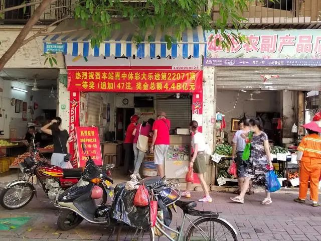 当他们路过体彩投注站时,纷纷驻足停留,被门口写着“本站喜中体彩大乐透第22071期一等奖(追加)47注,奖金总额4.48亿元”的广告牌所吸引。