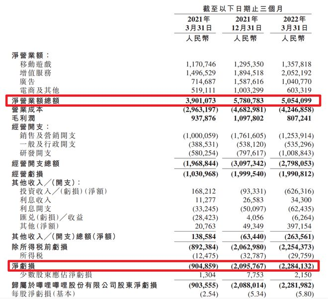 财务方面更是如此,2022年第一季度B站收入同比增长30%,为近三年以来的最低增速。毛利润为8.07亿,同比下降14%。净亏损22.84亿元,上年同期净亏损9.05亿元,同比扩大超1.5倍。