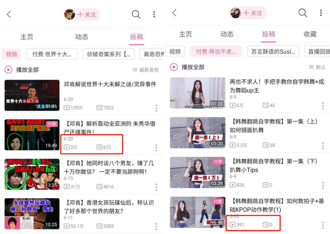 而在“邓肯”之前,其实就已经有UP主尝试付费视频,只是没能像他一样激起那么大水花。例如,拥有60万+粉丝的“苏司喵”发布了价值28元的舞蹈教程,20天的累计播放量仅为三位数,其中一条视频仍处于0弹幕的状态。