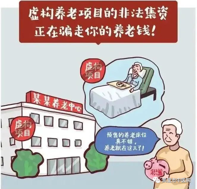 近年来,随着养老服务业的不断升温,打着“关爱老人 ” “健康养老”等旗号实施的养老诈骗犯罪也逐渐增多,坑骗老年人的“养老钱”,给广大老年朋友造成经济损失、精神痛苦,严重影响老年人身心健康、家庭和睦。为有效维护广大老年朋友们财产安全,凯里市中医医院举例几种典型诈骗方式让我们共同学习预防!