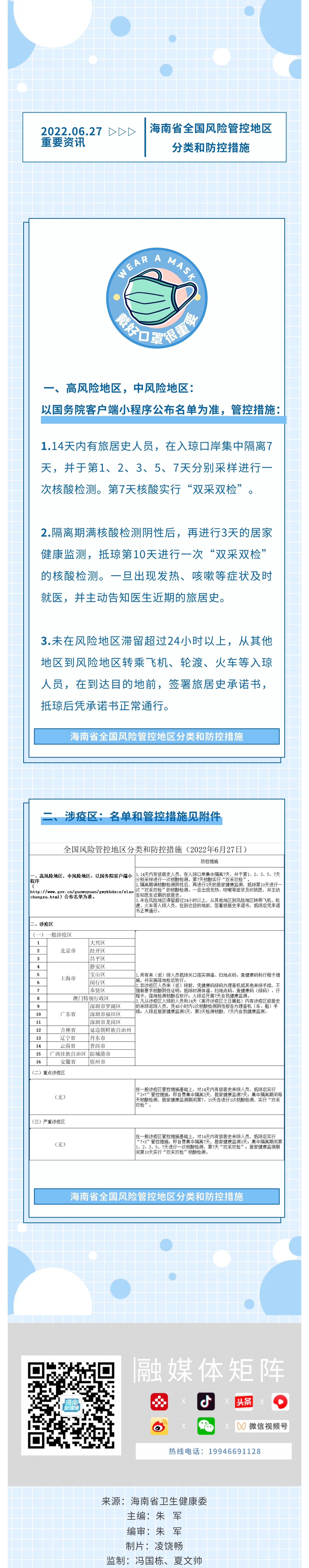 海南省全国风险管控地区分类和防控措施(2022年6月27日)