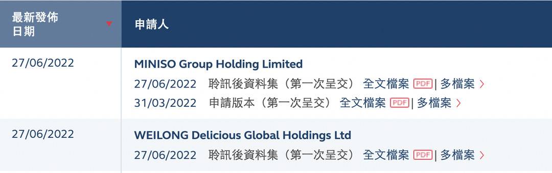 在卫龙通过聆讯的同一天,6月27日晚间,名创优品也出现在通过港交所上市聆讯的名单中,此前的3月31日,名创优品才递交申请到港交所主板。