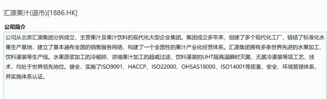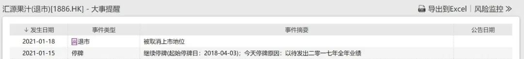 资料显示,2021年1月18日,汇源被港交所摘牌。