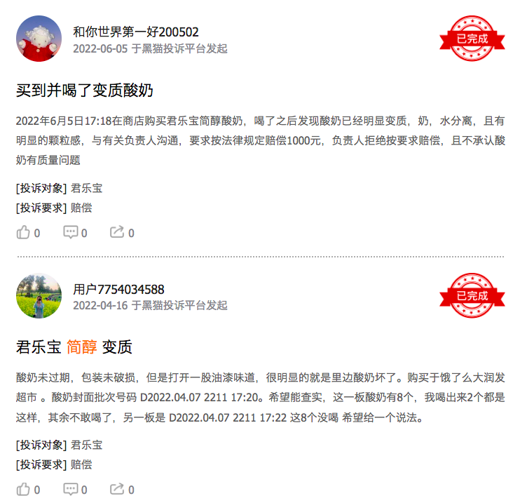 不过目前简醇在黑猫投诉平台上也有遭到一些消费者的投诉,有人称买到并喝了变质酸奶,这也是值得魏立华注意的,毕竟作为乳品企业,食品安全就是企业的生命线。