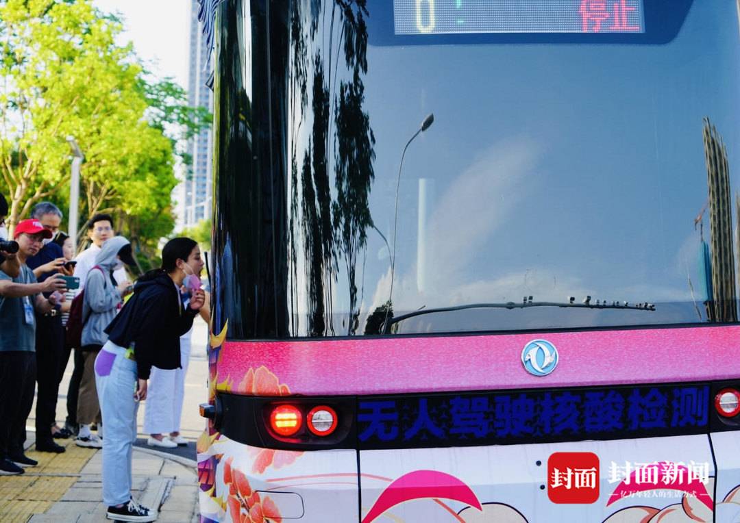也是在车谷,一台无人驾驶核酸检测车吸引了记者注意。而在企业工作人员眼中,国内首个24小时服务的车路协同无人驾驶接驳巴士,似乎更值得一提。