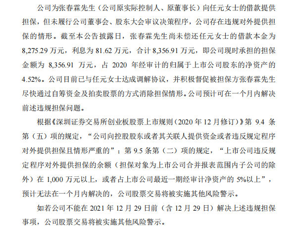 从巴安水务2021年11月29日公布的自查信息看,违规担保涉及张春霖、上市公司与任元女士民间贷款合同纠纷一案。
