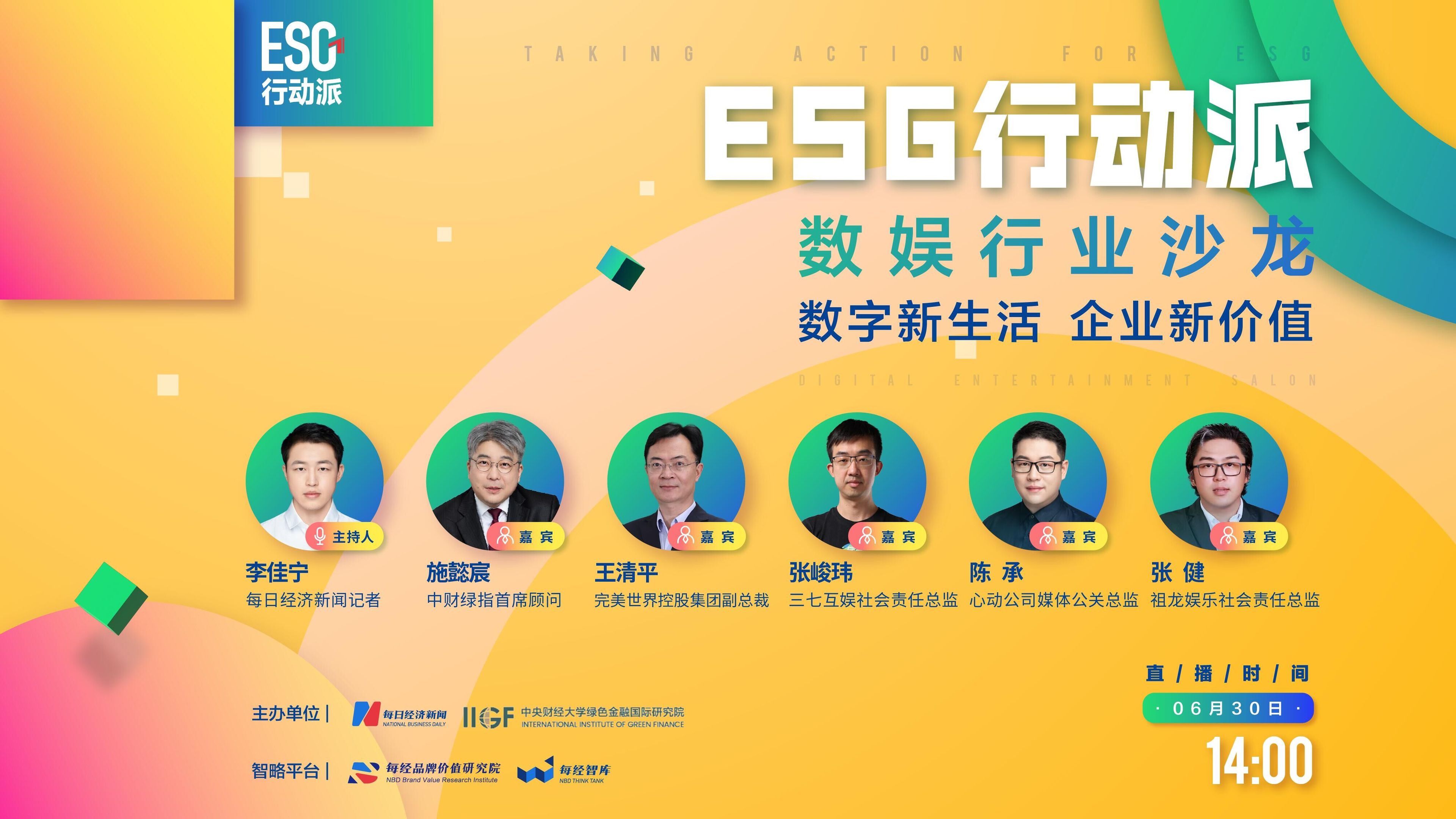 6月30日,每日经济新闻联合中央财经大学绿色金融国际研究院共同举办了主题为“数字新生活、企业新价值”的ESG行动派数娱行业沙龙。中财绿指首席顾问施懿宸、完美世界控股集团副总裁王清平、三七互娱(SZ002555,股价21.39元,市值474.4亿元)社会责任总监张峻玮、心动公司(HK2400,股价20.75港元,市值99.69亿港元)媒体公关总监陈承、祖龙娱乐(HK9990,股价5.71港元,市值46.36亿港元)社会责任总监张健共同围绕数娱企业的ESG实践路径、未来ESG发展的探索与创新等话题,分享了自己的经验与思考。