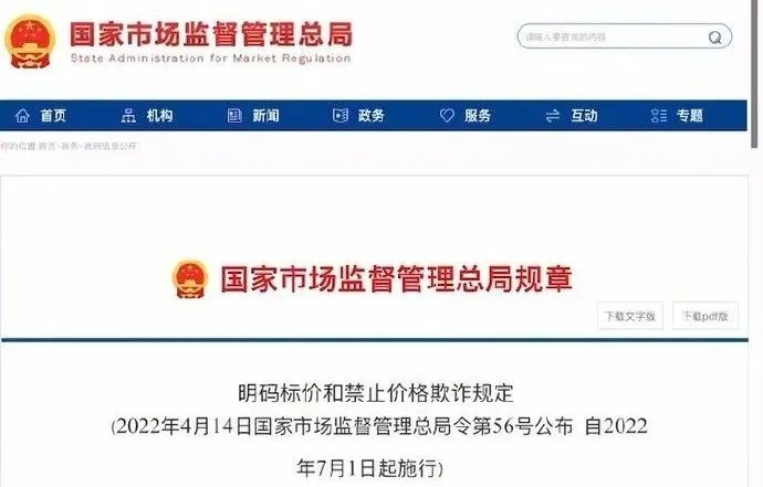 市场监管总局发布的《明码标价和禁止价格欺诈规定》7月1日起施行。《规定》明确了经营者不得实施的七种典型价格欺诈行为: