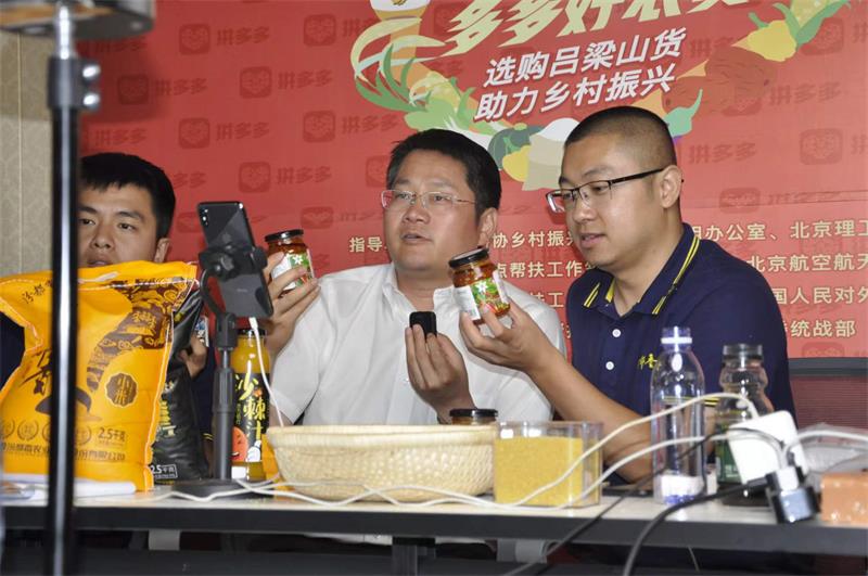 在“拼多多寻鲜中国,多多好农货——选购吕梁山货 助力乡村振兴”活动现场,临县县委常委、县人民政府副县长吕鹏、临县人民政府副县长王伟、方山县人民政府副县长周明宇、中阳县人民政府副县长郭伟丰、岚县人民政府副县长赵吝加等五个县的中央挂职干部悉数到场,为当地的特色农产品站台代言。