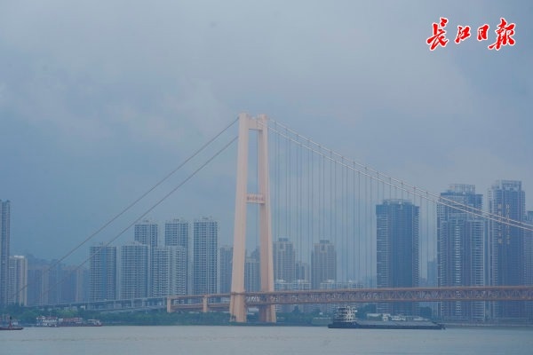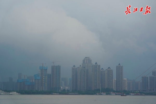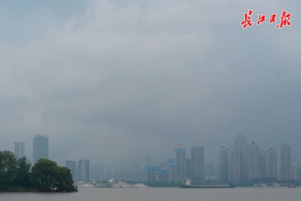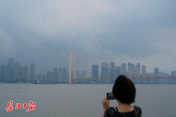 长江日报大武汉客户端7月4日讯 4日下午,一场强对流天气袭击武汉,但在白沙洲附近的洪山江滩上基本滴雨未落,从这里看长江北岸的汉阳区却是风起云涌,大雨倾盆。雨云迅速地掠过杨泗港长江大桥,给江北片带来降雨。