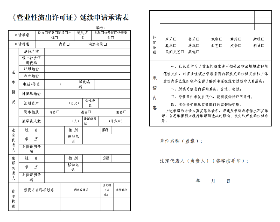 按照《淄博市推行信用审批打造“承诺即入”新模式实施方案(试行)》文件规定,“文艺表演团体申请从事营业性演出活动许可延续”纳入了全市首批“承诺即入”改革事项清单,通过“一表即入”模式,承诺完成当场发证。以前业务常规办理一般要经过“申请、受理、审批、办结”四个环节,若是复杂事项还需进行“审核、勘验、公示”三个环节。每个环节都有不同要求,办事企业群众需要按照办事流程办理,耗时相对较长。而信用审批“承诺即入”模式,对风险程度极低的事项,实行“一表即入”,将申请条件、受理材料、承诺内容等统一整合至一张《申请承诺表》,申请人填写一张《申请承诺表》,审批部门推行审验合一,无需核验,即可实现即审即办。目前,张店区行政审批服务局“一表即入”事项已达26个。