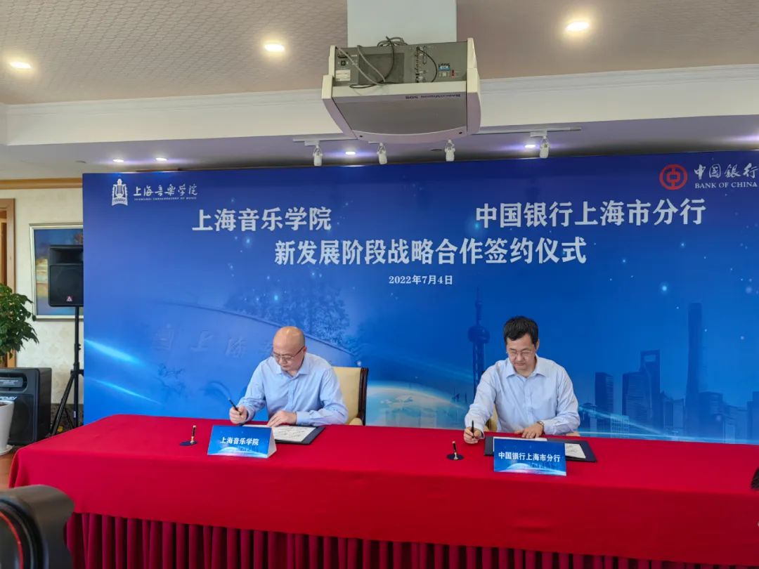 2022年7月4日,上海音乐学院与中国银行上海市分行签约仪式在中银大厦隆重举行。
