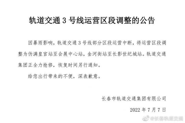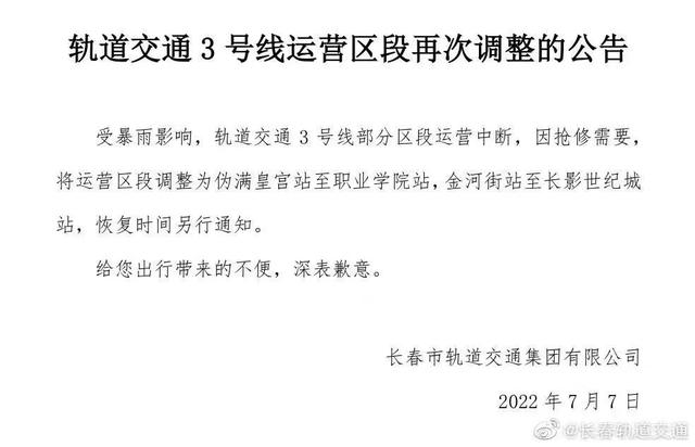 此前,@长春轨道交通发布轨道交通3号线运营区段调整的公告。