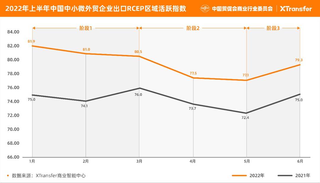 日前,中国国际贸易促进委员会商业行业委员会与外贸企业跨境金融和风控服务公司XTransfer联合发布《2022年上半年中小微企业出口贸易(B2B)指数报告》。报告指出,《区域全面经济伙伴关系协定》(RCEP)正式实施生效已满半年,向RCEP区域国家出口的中小微外贸企业数同比增长了23.1%,RCEP政策红利逐步释放。