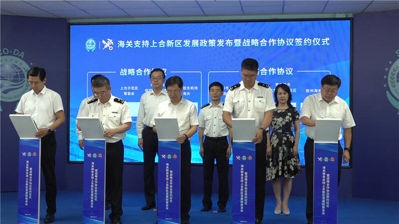 齐鲁网·闪电新闻8月2日讯 为助推上合新区高质量发展,8月2日下午,海关税务支持上合新区发展政策发布暨战略合作协议签约仪式在上合国家客厅举行。在发布会上,青岛海关发布支持上合新区发展的“532工程”,旨在将上合示范区打造成为海关改革的先行先试承接区;国家税务总局青岛市税务局发布支持上合新区发展的十条政策,为现代化上合新区高质量发展注入源源不断的“税动力”。