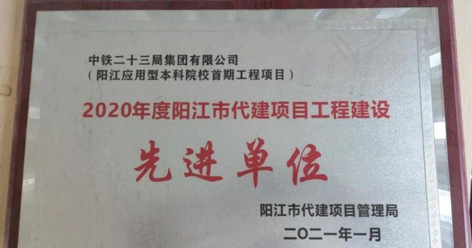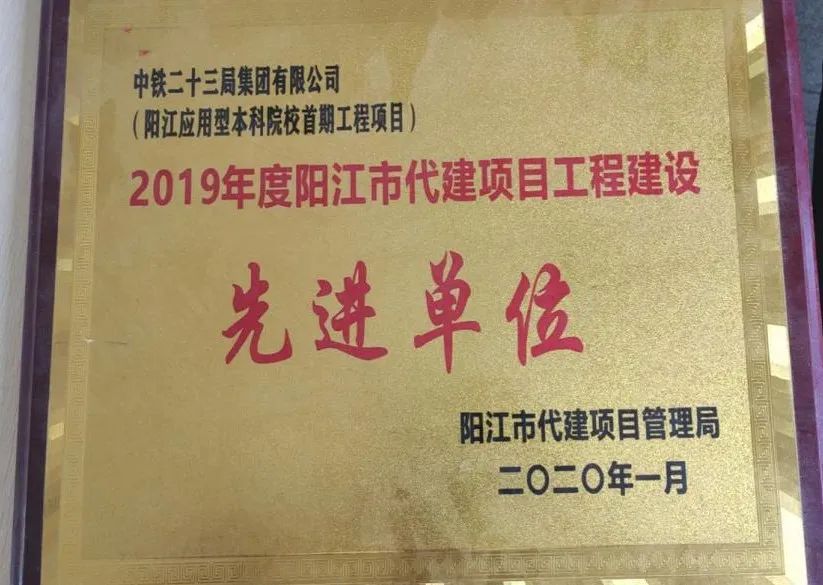 1、承建阳江应用型本科院校首期工程荣获2019年度和2020年度“阳江市代建项目工程建设先进单位”。