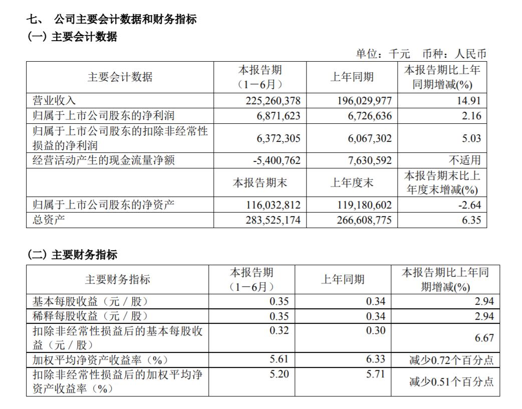 中新经纬8月9日电 9日晚间,工业富联披露半年报显示,上半年实现营业收入2252.6亿元,同比增长14.91%;归属于母公司所有者的净利润68.72亿元,同比增长2.16%;基本每股收益0.35元,同比增长2.94%。