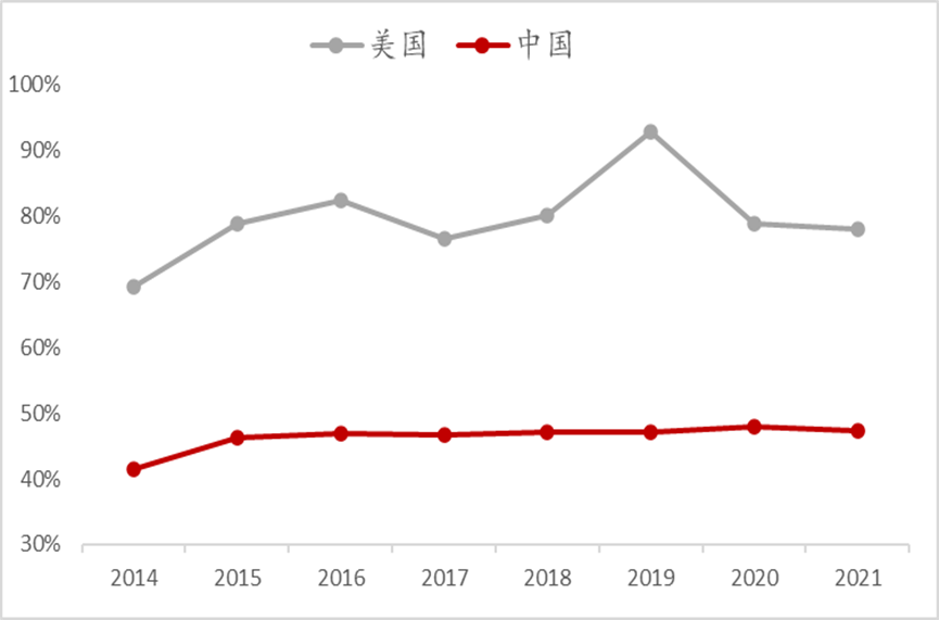 过去三十年,我国住房需求高增,房地产业主要以开发建设为核心,“一条龙”服务模式为主,房企融资高度依赖银行贷款。相对成熟的美国房地产业则以金融运作为核心,投资开发、销售、物业管理等各环节专业分工。同时,美国房企以REITs为重要的融资手段,融资渠道更加广泛,截至2021年底美国REITs总规模超过1.7万亿美元。