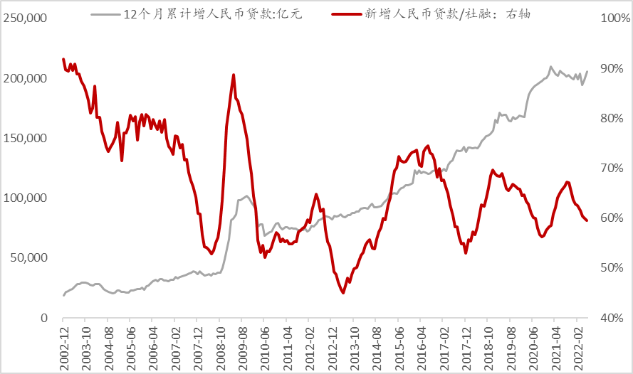 尽管近期房地产政策在不断放松,但基于人口老龄化加速和城镇化进程放缓的大趋势,无论调控政策是松一点还是紧一点,房地产在我国经济中比重下降的趋势都不会改变。房地产拐点出现后将对金融结构产生重要影响。新增贷款规模仍在上升,但占社融比重总体下行。