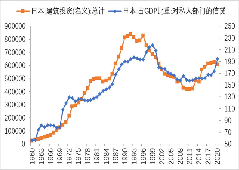无论是美国还是日本,信贷的增量都与房地产呈现明显正相关性。在房地产以及重资产行业繁荣发展的时期,间接融资(银行信贷)具有更高的效率,土地、房产等资产作为抵押物具有天然的优势。