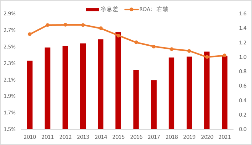 当前我国个人贷款占比36%,制造业贷款占比9%,实体融资意愿较低。近10年来规模前七大上市银行(工行,农行,中行,建行,交行,招商,兴业)ROA不断走低,2021年ROA企稳但净息差开始回落。一方面,我国中小银行需要通过深化改革来化解区域性风险;另一方面,大型银行则需有序推进混业经营提升综合竞争力。