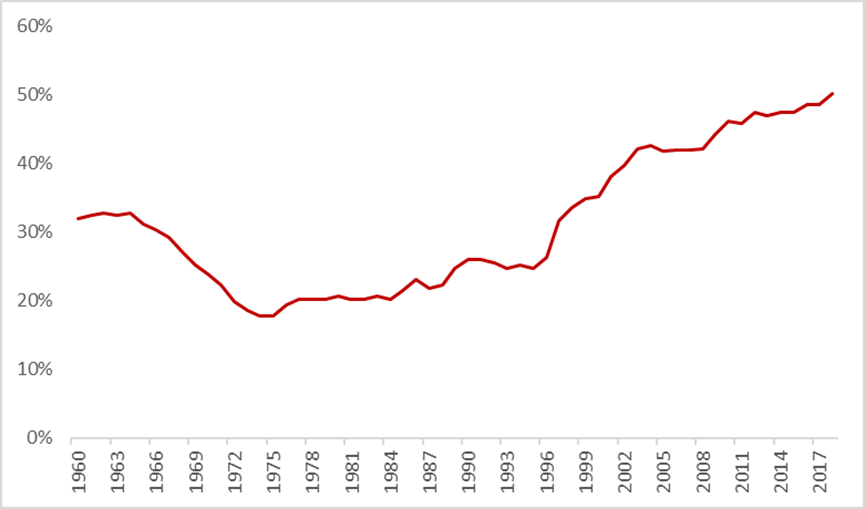为何我国会出现未富先老现象呢?原因在于我国从1950-1980这30年间经济增速并没有超过全球平均增长水平,即中国的GDP在全球的份额并没有上升,有的阶段还出现了下降。但像日本、韩国等在50年代后就出现持续20余年的高增长,从而一举成为高收入国家乃至步入发达国家行列。