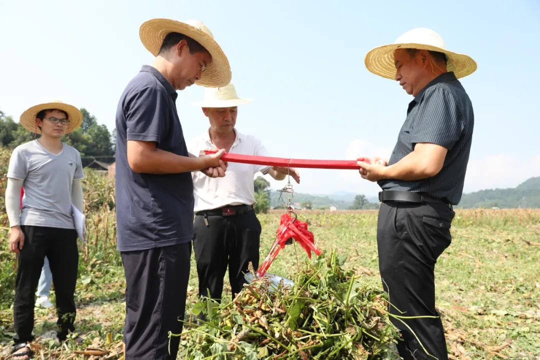 同时,农技人员就大豆玉米带状复合种植模式下的大豆进行测产。当天,农技专家组随机抽选3个田块进行测产,并通过现场计算亩穴数、平均穴粒数、穴粒重、百粒重,对亩产量进行测算。据当天的测产结果显示,相较以往的单一作物种植模式,大豆玉米带状复合种植模式下的大豆亩产量达120公斤,亩产值480元以上,已达到玉米不减产另增100公斤以上大豆的目的。