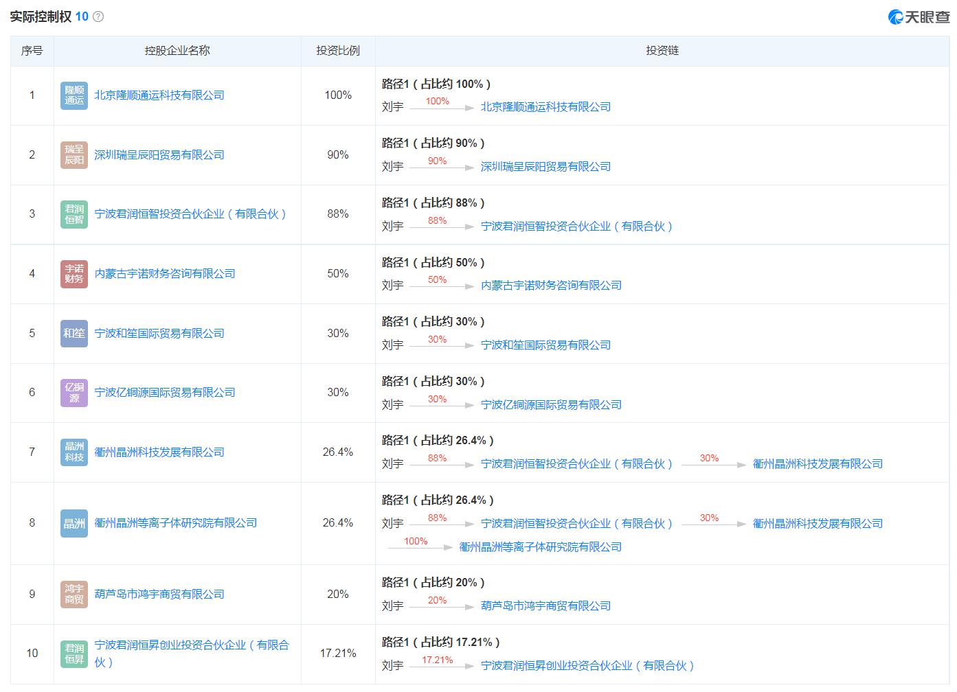 天眼查APP显示,宁波和笙成立于2018年5月,经营范围包括自营和代理各类货物和技术的进出口业务;金属材料、矿产品、化工原料及制品(不含危险化学品)、五金交电、建筑材料、普通机械设备、电子产品的批发、零售。刘宇持有该公司30%股份。