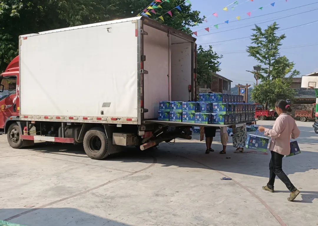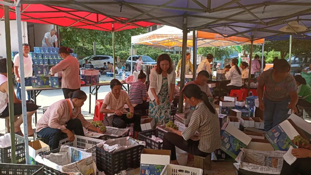 在三都县普安镇前进村,数十名群众分工合作,挑选葡萄、包装、称重、装车,现场一派繁忙景象,争取将今天一早采摘的葡萄早点送上货车,运输出去。