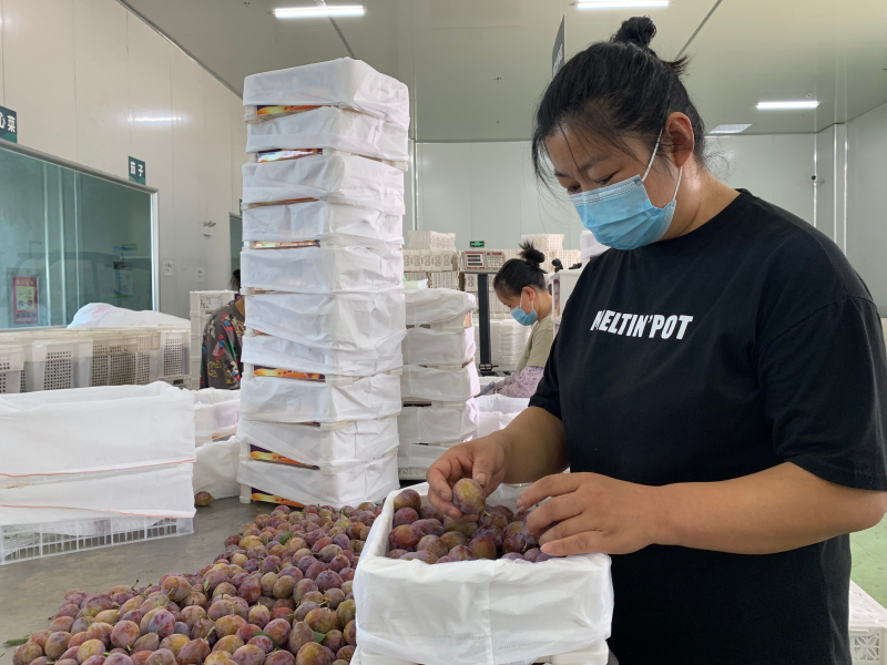 8月12日上午,在英吉沙县工业园区特色食品产业园厂房内,阿克苏市绿水源果业农民专业合作社的员工正有条不紊分选、包装新梅。今年英吉沙县种植新梅4.6万余亩,目前已全部进入盛果期。通过政府的牵线搭桥,阿克苏市绿水源果业农民专业合作社等客商提前与种植户签订收购合同,并以每公斤12元的价格收购。