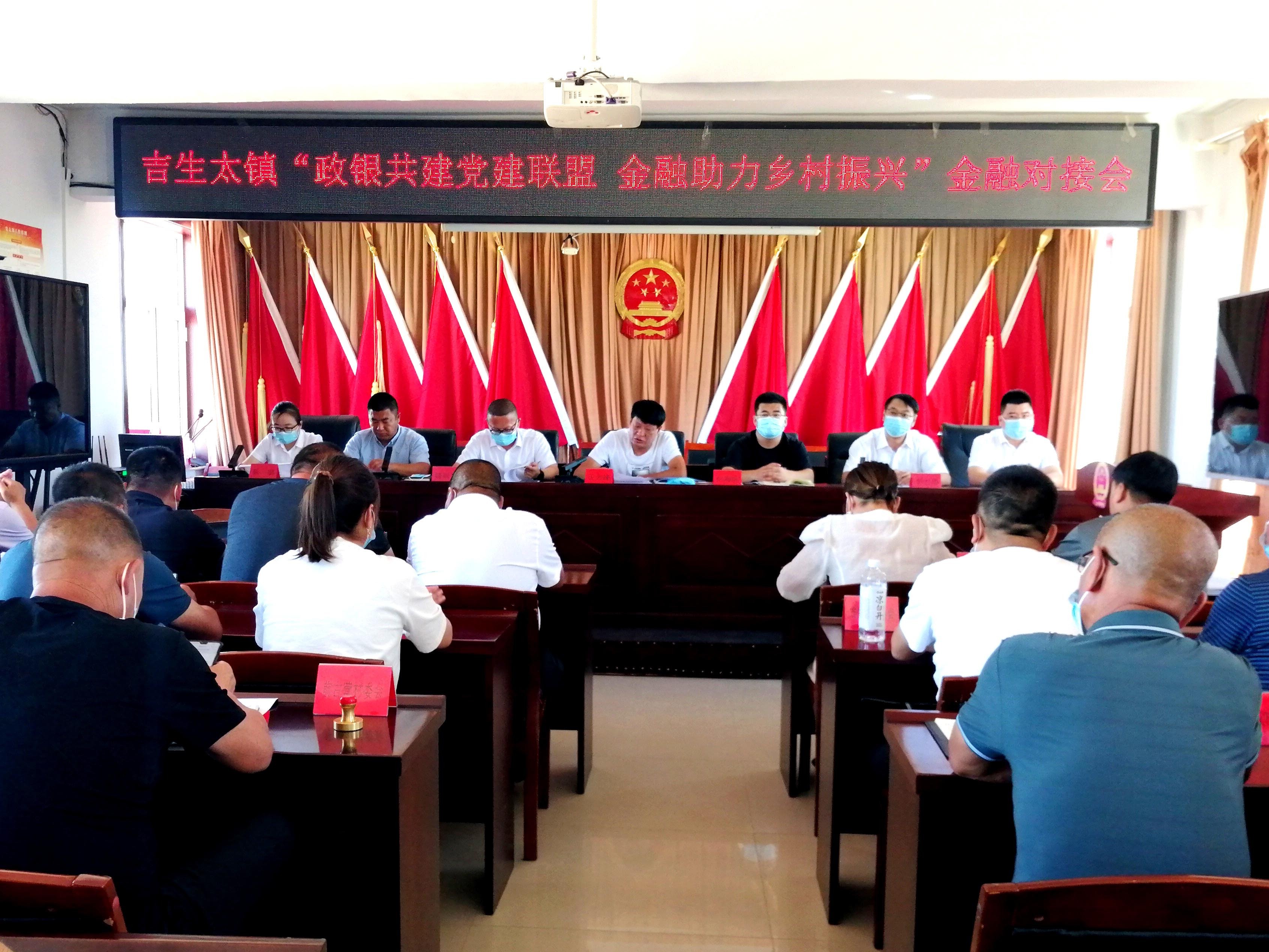 按照党中央、国务院和各级党委政府抓党建促乡村振兴工作部署和要求,8月16日,内蒙古四子王旗农信联社党委与吉生太镇党委联合召开“政银共建党建联盟 金融助力乡村振兴”对接会。吉生太镇党委书记王云峰及在家班子成员,行政村支部书记代表,四子王旗农信联社党委副书记、主任魏福平,党委委员、副主任李治华,业务发展部经理,大井坡信用社主任以及工作人员出席活动。