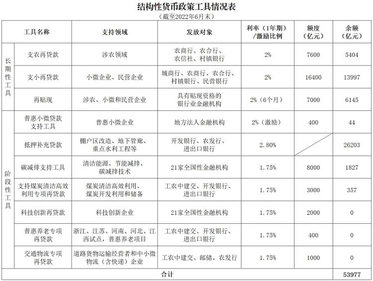交通物流专项再贷款。按照国务院常务会议决定,2022年5月,人民银行联合交通运输部创设交通物流专项再贷款,发放对象为农发行、工行、农行、中行、建行、交行和邮储银行共7家全国性金融机构,明确支持道路货物运输经营者和中小微物流(含快递)企业。对于符合要求的贷款,按贷款本金的100%予以低成本资金支持,目前实施期为2022年,按季操作。属于阶段性工具。
