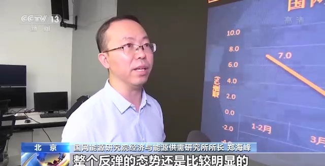 国网能源研究院经济与能源供需研究所所长 郑海峰:今年前四个月,用电量增速是一路向下的,从年初的7.0%一直降到4月份的-1.9%,主要是受疫情等因素影响,随着稳经济大盘政策逐步落地实施,叠加入夏以来高温天气影响,5月、6月、7月用电增速持续回升,整个反弹态势比较明显。