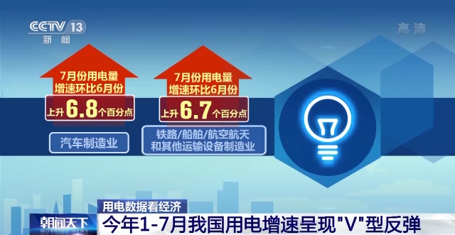电力是经济的晴雨表,近期,全国各地正在陆续发布1至7月的用电量数据。记者从国家电网了解到,今年1至7月,我国用电增速呈现“V”型反弹。