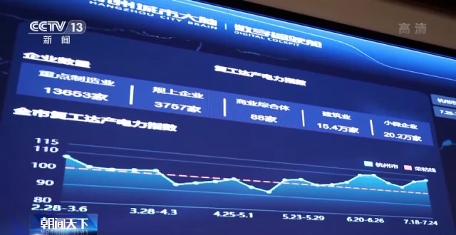 7月底,杭州复工达产电力指数已达111.3,反映企业生产持续恢复,经济运行实现企稳回升。
