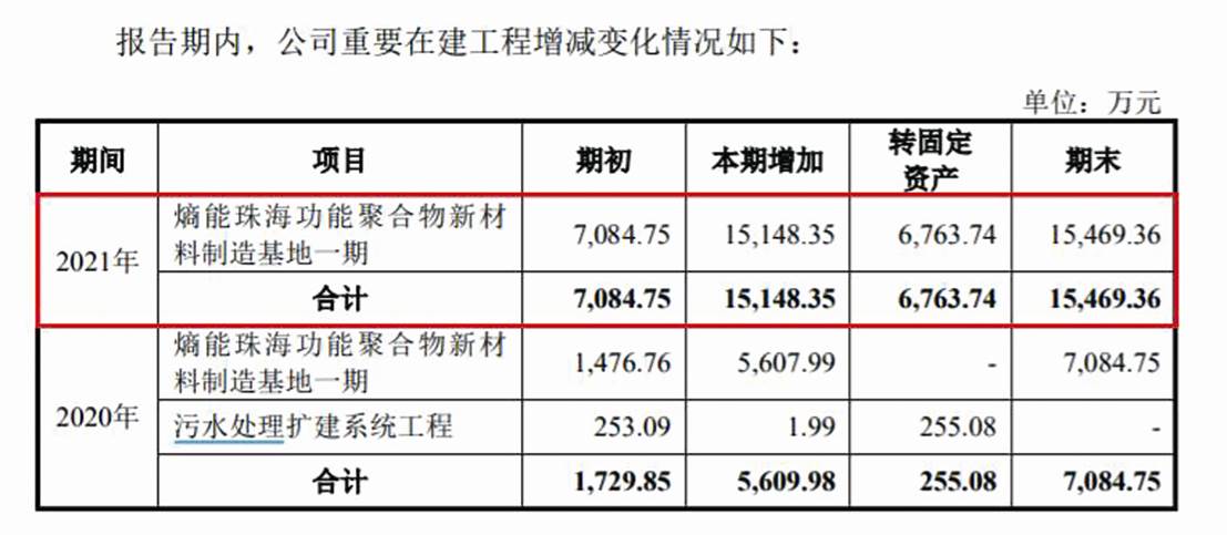值得注意的是,公司熵能珠海基地两期项目投资总金额3.90亿元,与环评报告书显示的该项目投资金额存在较大差异。