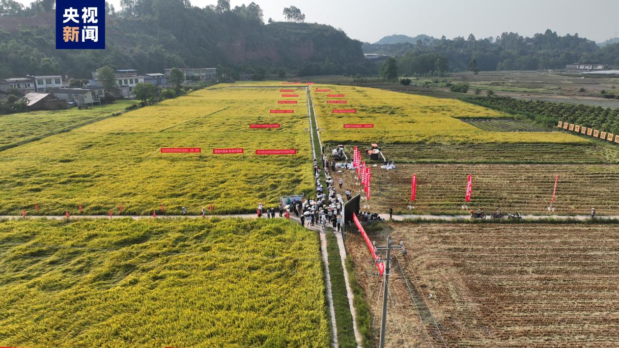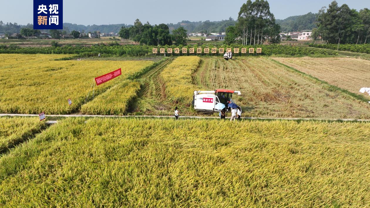 眼下,四川盆地的水稻陆续进入了收割期。在四川乐山市夹江县新场镇西坝村的1000多亩水稻田里,几台一体化收割机正来回穿梭,把金灿灿的稻穗卷入机舱,收割、脱粒、扬谷,一气呵成。
