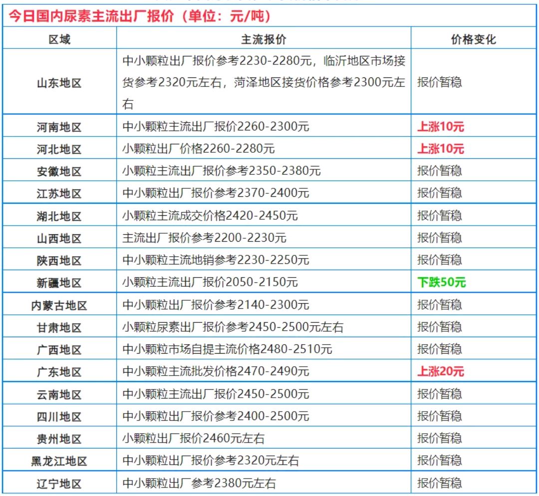 8月23日,尿素价格部分地区小幅上涨,厂家销售明显有所好转,挺价意愿较强。随着秋种越来越近,市场供需两段心态转向积极。