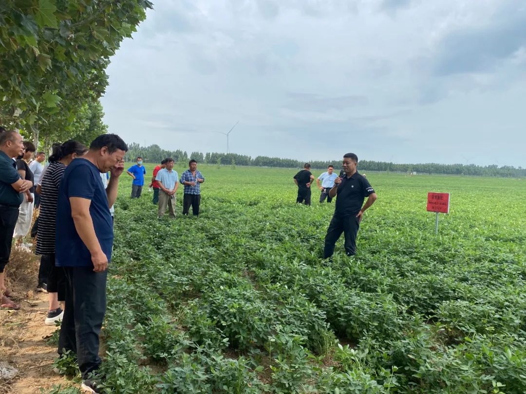 8月19日,记者走进延津县马庄乡宋庄村,田地里花生长势正盛,远远望去一片绿油油的“花生海”。来自辉县市的观摩团对宋庄村绿色高效高质示范田的种植模式很感兴趣。