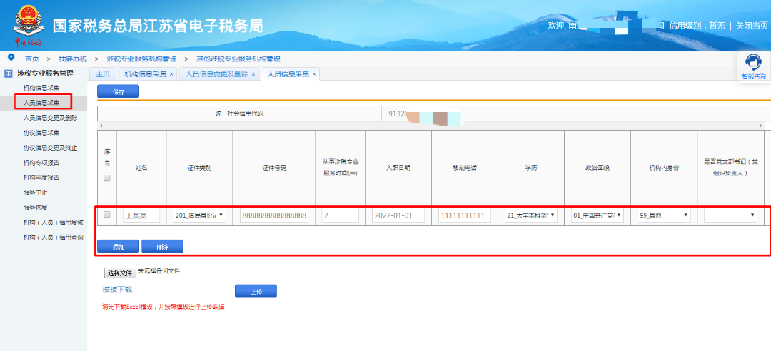 点击“人员信息采集”,填写涉税专业服务机构从业人员的基本信息。
