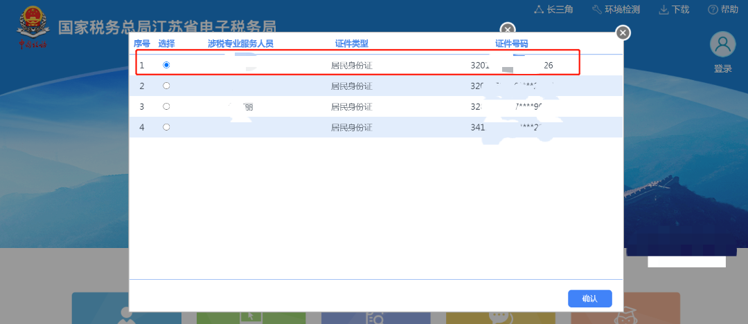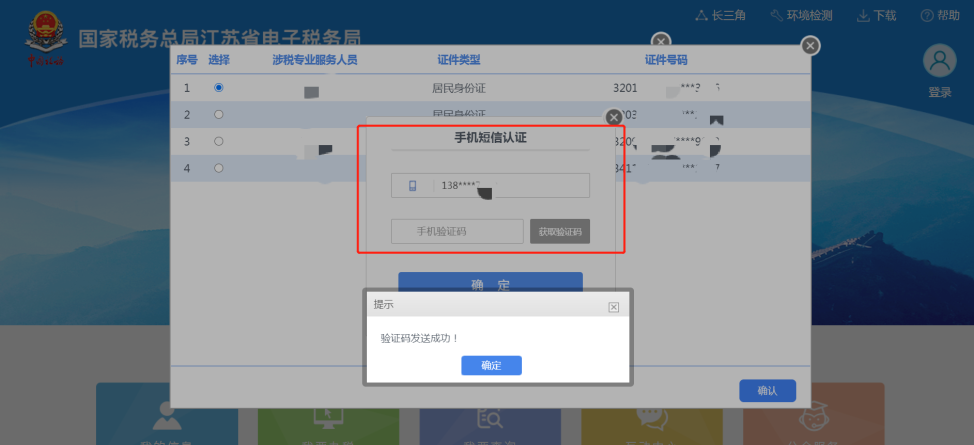 选择对应的涉税专业服务人员,经手机短信验证通过后进行下一步操作。