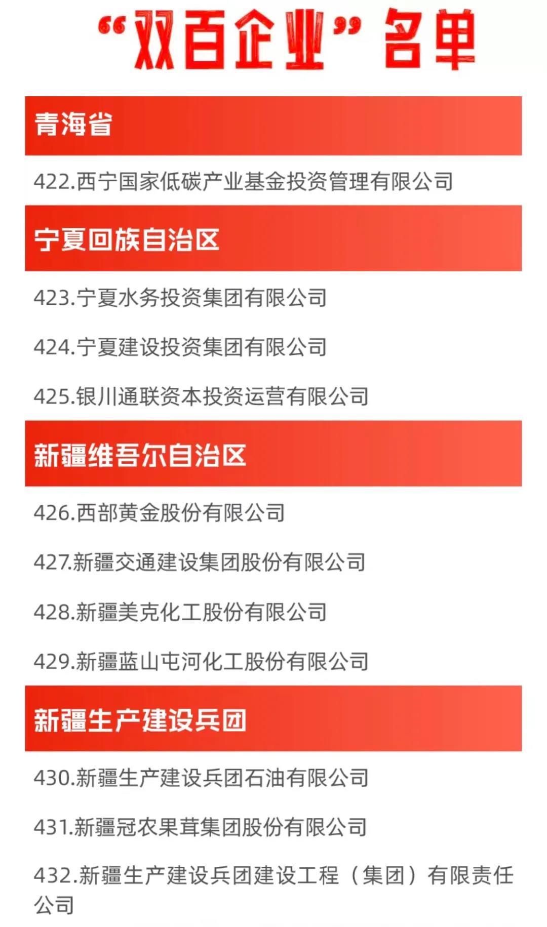 石榴云/新疆日报讯(记者 石鑫报道)8月22日,国务院国资委网站公布了最新“双百企业”名单,449家企业入选,其中新疆7家企业榜上有名。