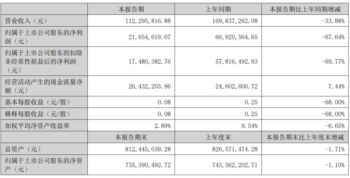 【大河财立方消息】8月25日,森霸传感披露2022年半年度报告。报告期内,公司实现营业收入1.12亿元,同比下降33.88%,实现归属于上市公司股东的净利润2165万元,同比下降67.64%,实现归属于上市公司股东的扣除非经常性损益后的净利润1748万元,同比下降69.77%,基本每股收益0.08元。