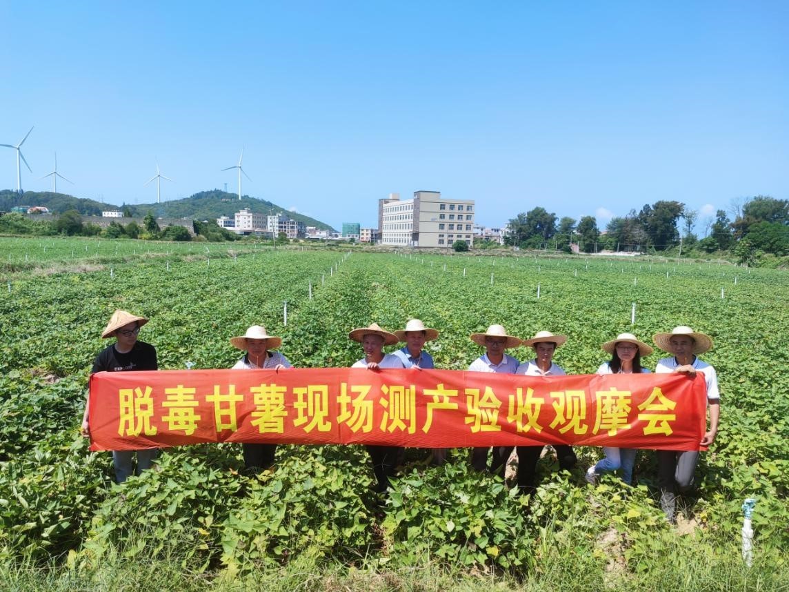 8月23日,漳浦县农业农村局对2022年六鳌镇脱毒甘薯试验展示田进行现场测产验收,据考种测产,普薯32脱毒苗种植亩产为3545.1公斤,非脱毒苗种植亩产为2330.9公斤,较非脱毒苗亩增产1214.2公斤,增幅达 52.1%。