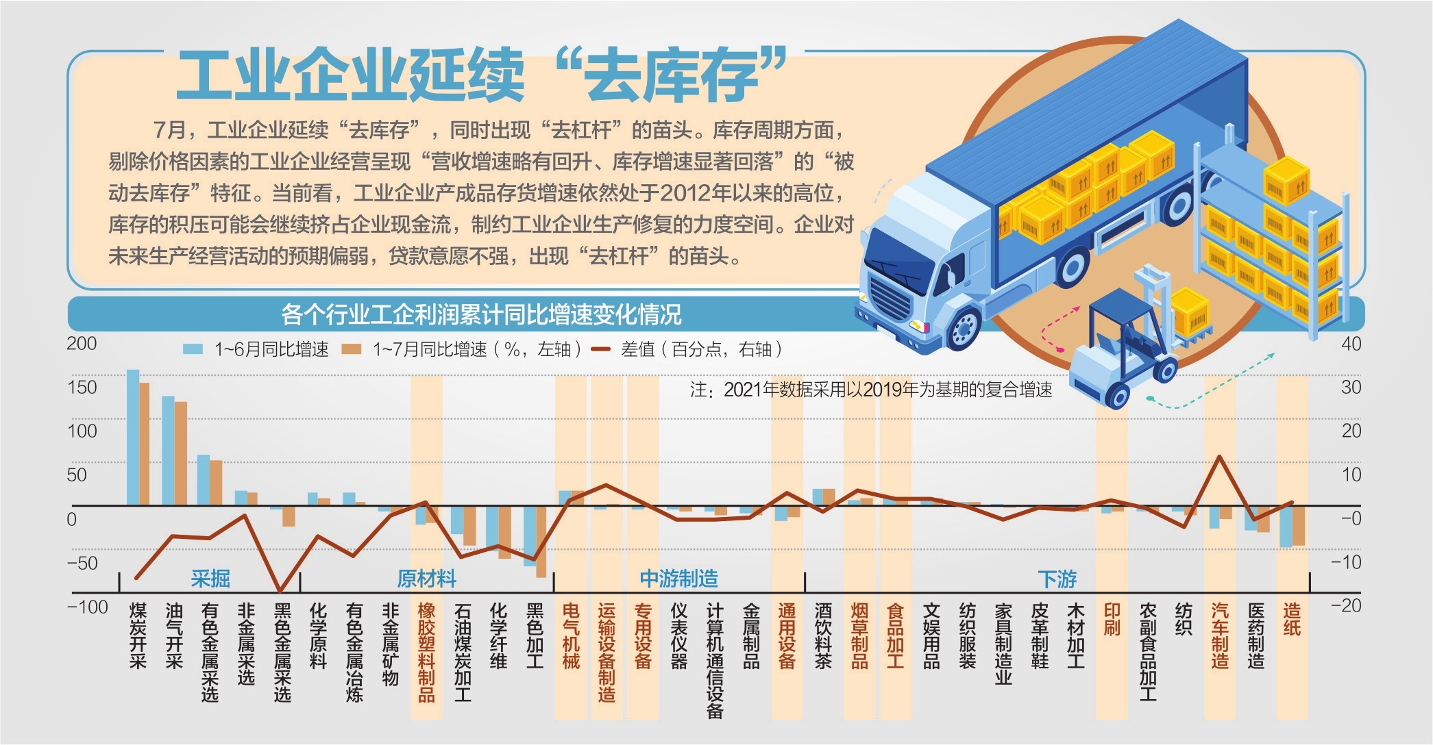 对于1~7月利润总额增速为何出现下降,朱虹结合数据分析称,具体来看,多因素致原材料行业利润降幅扩大。1~7月份,原材料制造业利润同比下降21.6%,降幅较上半年扩大7.6个百分点,影响规模以上工业企业利润增速较上半年回落2.2个百分点,是下拉工业企业利润增速最多的行业板块。